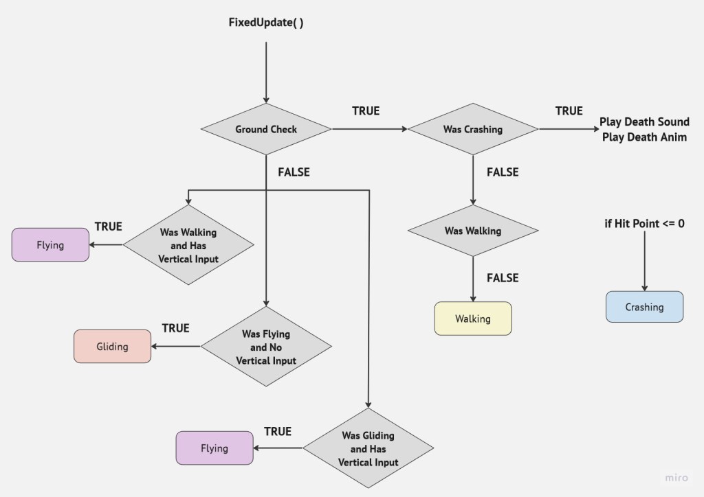 A rotation angle is cached so that when there’s no horizontal input, the bird won’t snap back to the default forward angle. A damp angle is also calculated to ensure smooth turning for the bird.